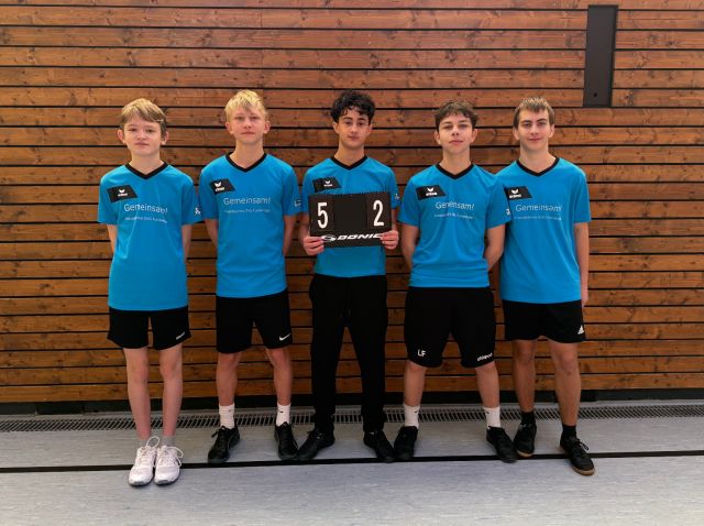 Für das Otto-Hahn-Gymnasium traten Lukas Fehrenbach, Paul Dreger, Ferdinand Heindl, Nick Fehrenbach und Elia Scungio an. Dank einer geschlossenen Mannschaftsleistung, großem Einsatz sowie fairen Schiedsrichterleistungen überzeugten die Spieler sowohl in den Einzel- als auch in den Doppelbegegnungen. Betreut wurden die Mannschaft von Kai Schartel.